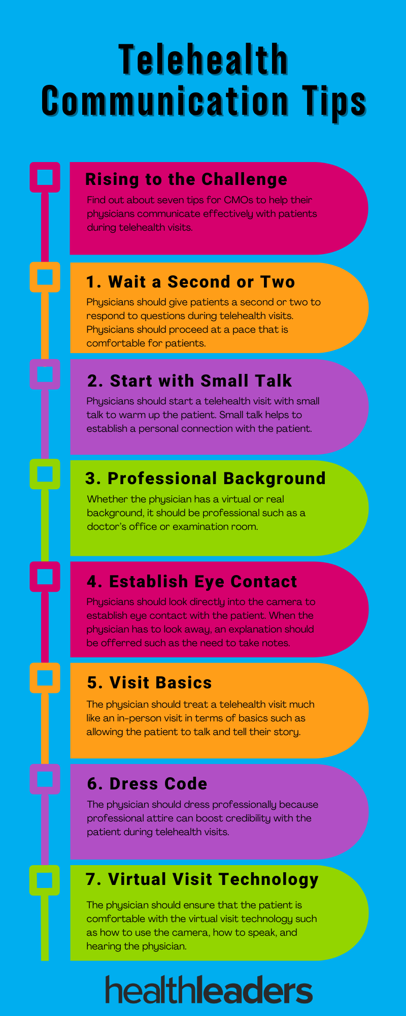 There are seven tips CMOs should teach their clinicians to communicate well during telehealth visits, according to the CMO of RWJBarnabas Health.